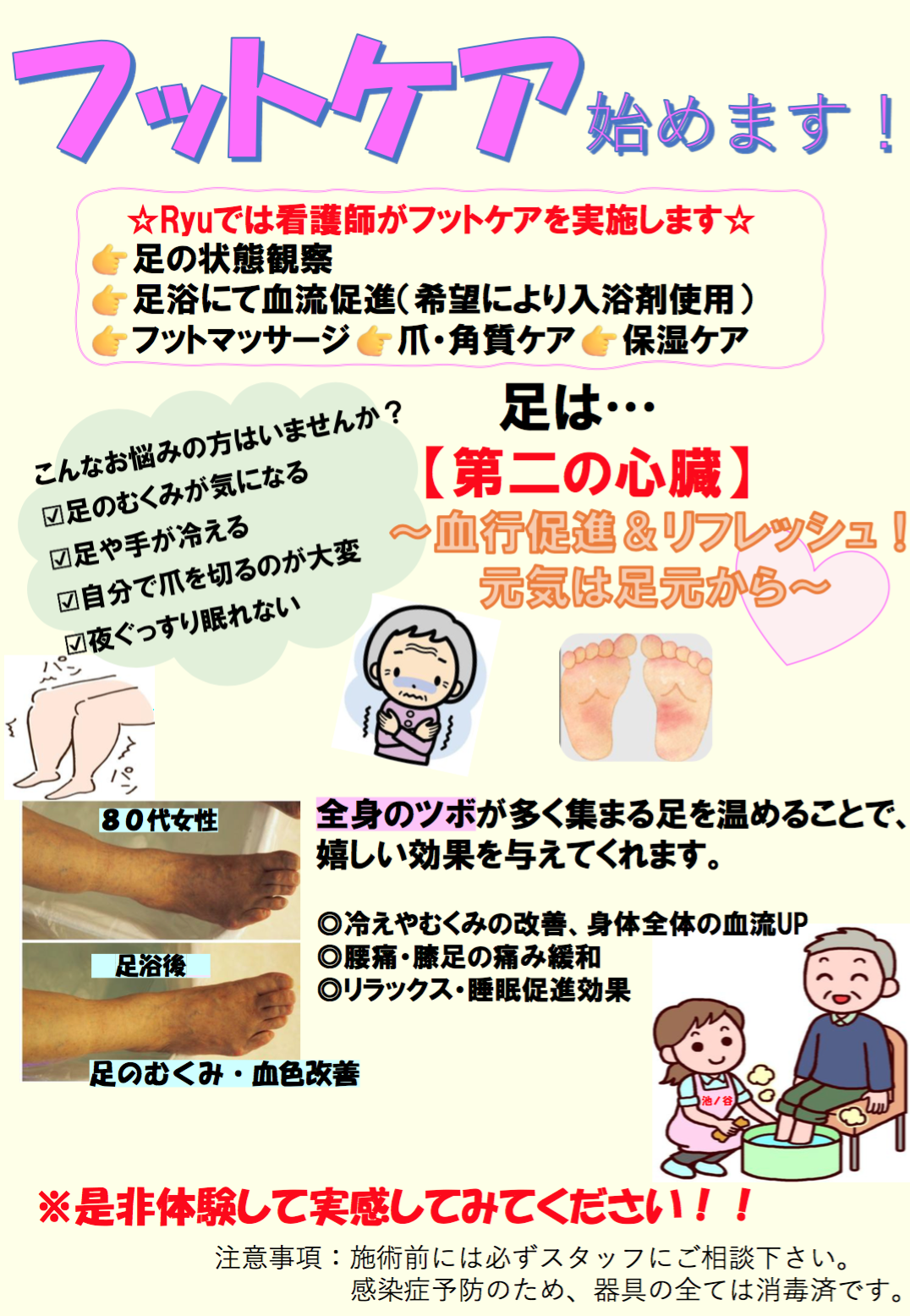 足の痛みや不快感が軽減されることで、日常生活が快適になります。また、スタッフとのコミュニケーションを通じて、精神的な安心感も得られます。